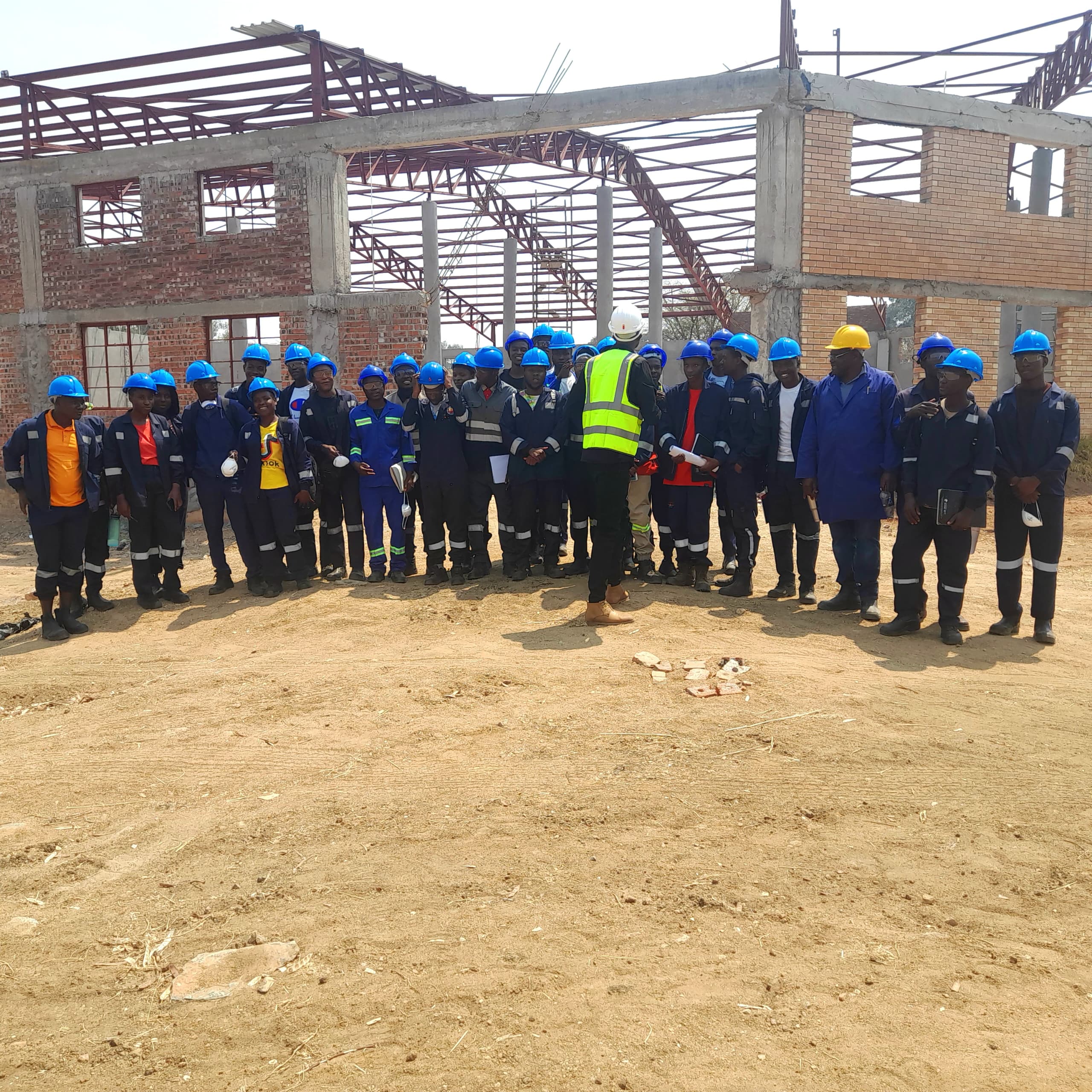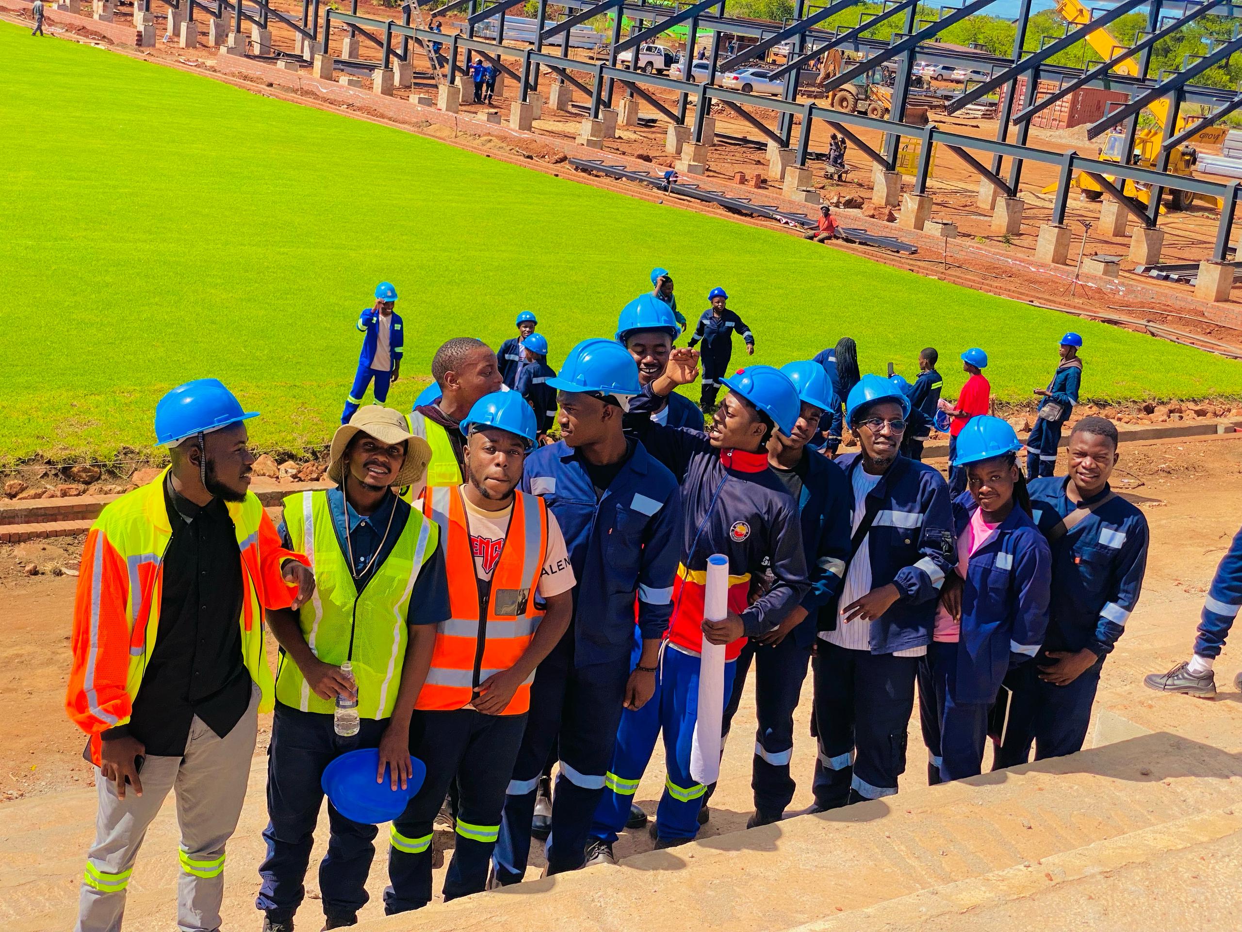 MSBE Engineering Students visits Chahwanda Stadium the 10 000-seater facility, also known as the Heart Stadium main arena under construction in Kwekwe as part of their Practical Skill Proficiency.This exercise is to equip them with the knowledge they require in their studies.